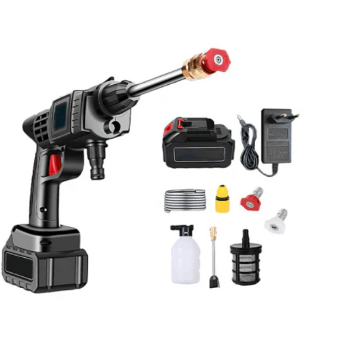 Apresentamos o Lavador de Alta Pressão Sem Fios, o seu aliado perfeito para uma limpeza rápida, potente e prática, onde quer que esteja 🌍.